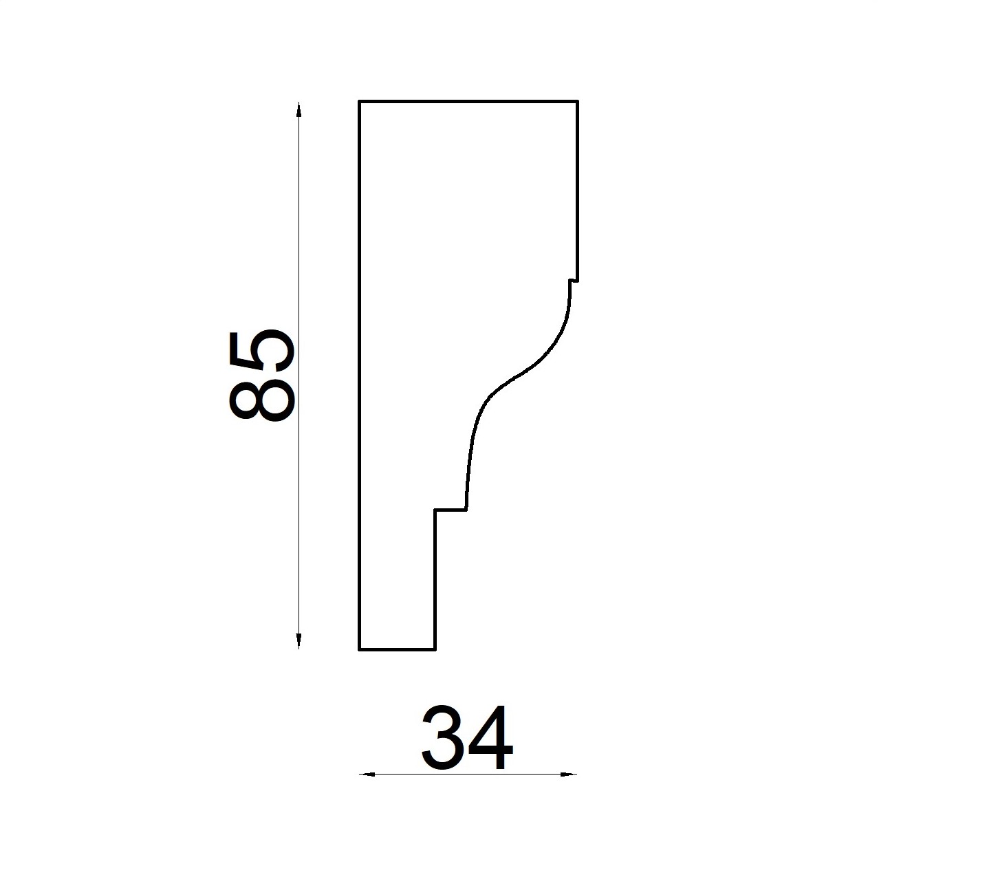Wymiary: grubość 34 mm x wysokość 85 mm x długość 1500 mm