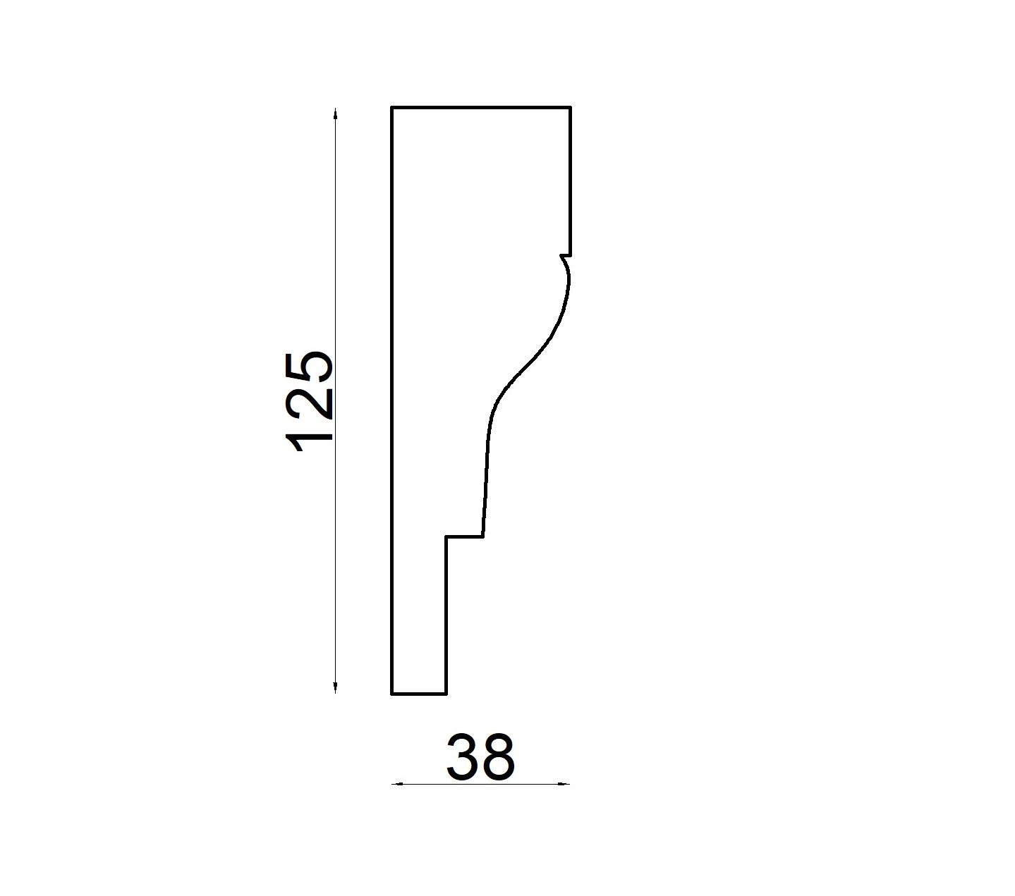 Wymiary: grubość 38 mm x wysokość 125 mm x długość 1500 mm