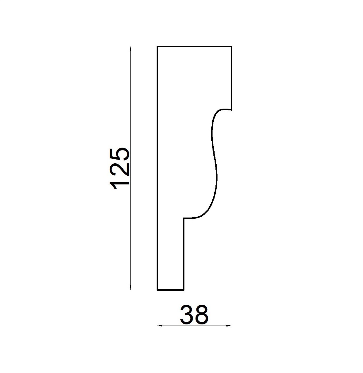 Wymiary: grubość 38 mm x wysokość 125 mm x długość 1500 mm