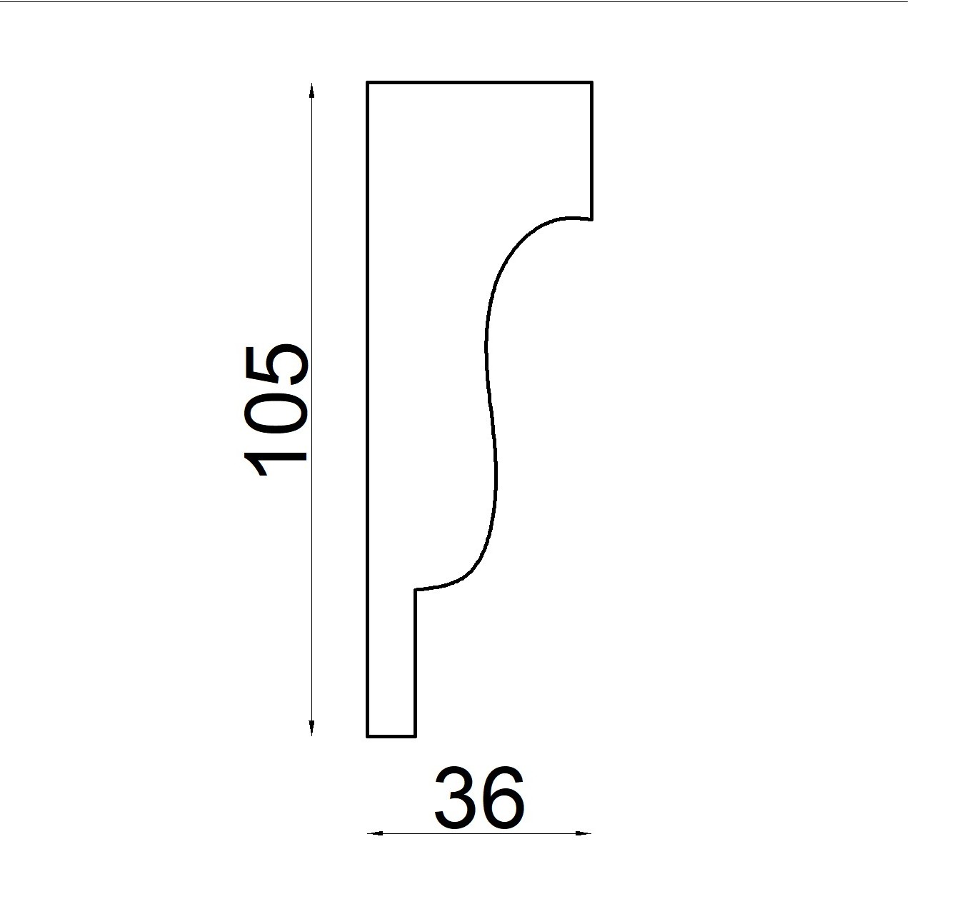 Wymiary: grubość 36 mm x wysokość 105 mm x długość 1500 mm