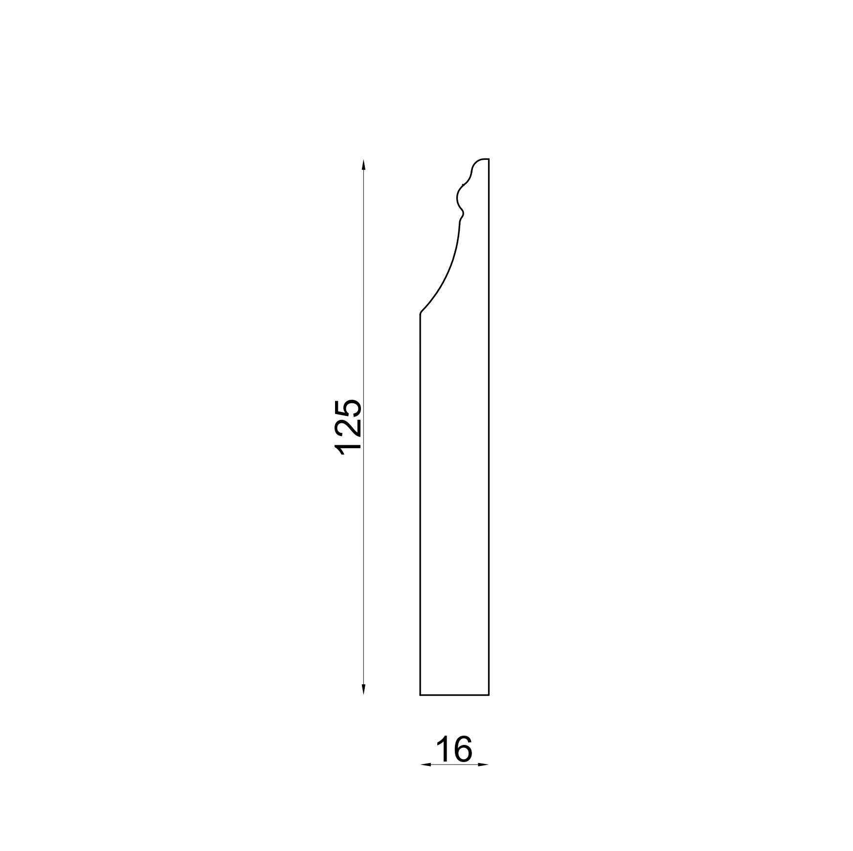 Wymiary: 16 mm grubość x 125 mm wysokość x długość 1500 mm