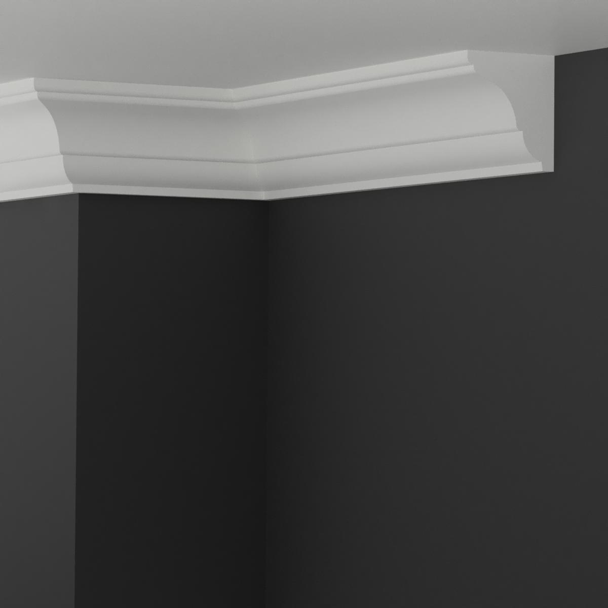 - Listwa przysufitowa – przylega zarówno do ściany, jak i do sufitu, tworząc harmonijne i estetyczne wykończenie wnętrza.