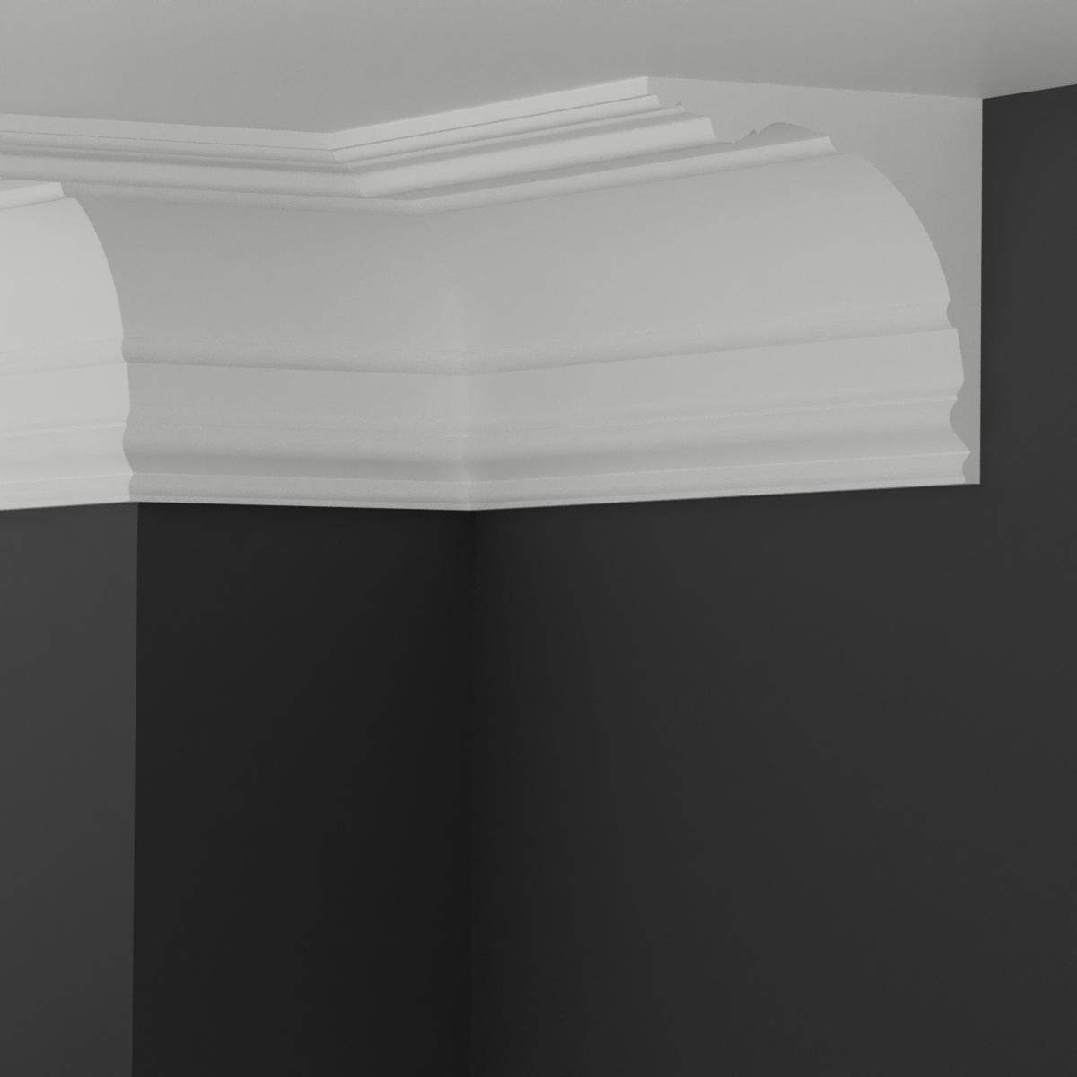 - Listwa przysufitowa – przylega zarówno do ściany, jak i do sufitu, tworząc harmonijne i estetyczne wykończenie wnętrza.