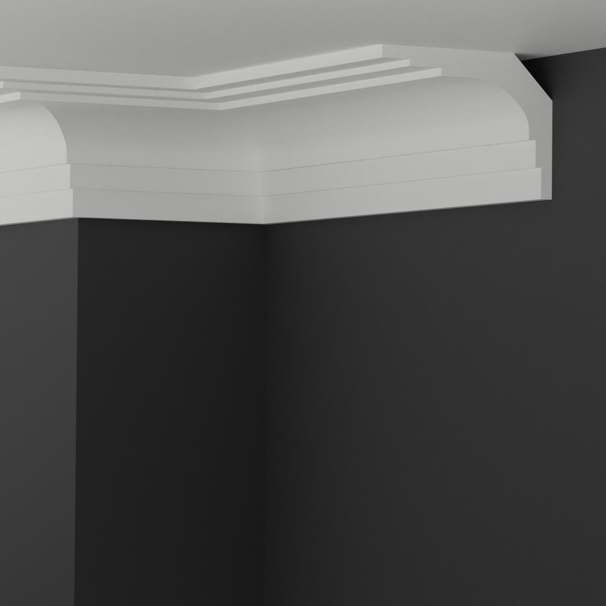 - Listwa przysufitowa – przylega zarówno do ściany, jak i do sufitu, tworząc harmonijne i estetyczne wykończenie wnętrza.