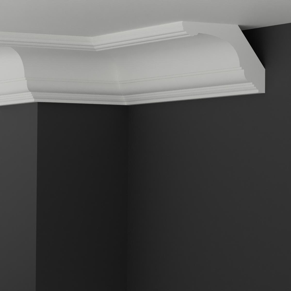 - Listwa przysufitowa – przylega zarówno do ściany, jak i do sufitu, tworząc harmonijne i estetyczne wykończenie wnętrza.