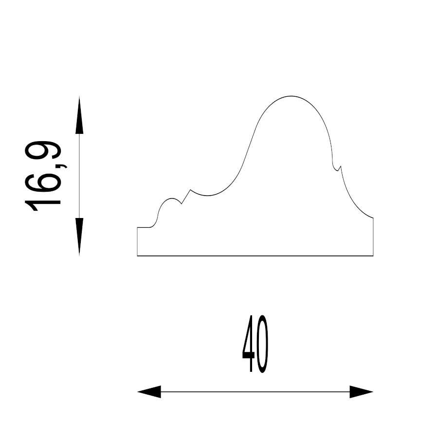Wymiary: grubość 17mm x wysokość 40mm x długość 2000mm