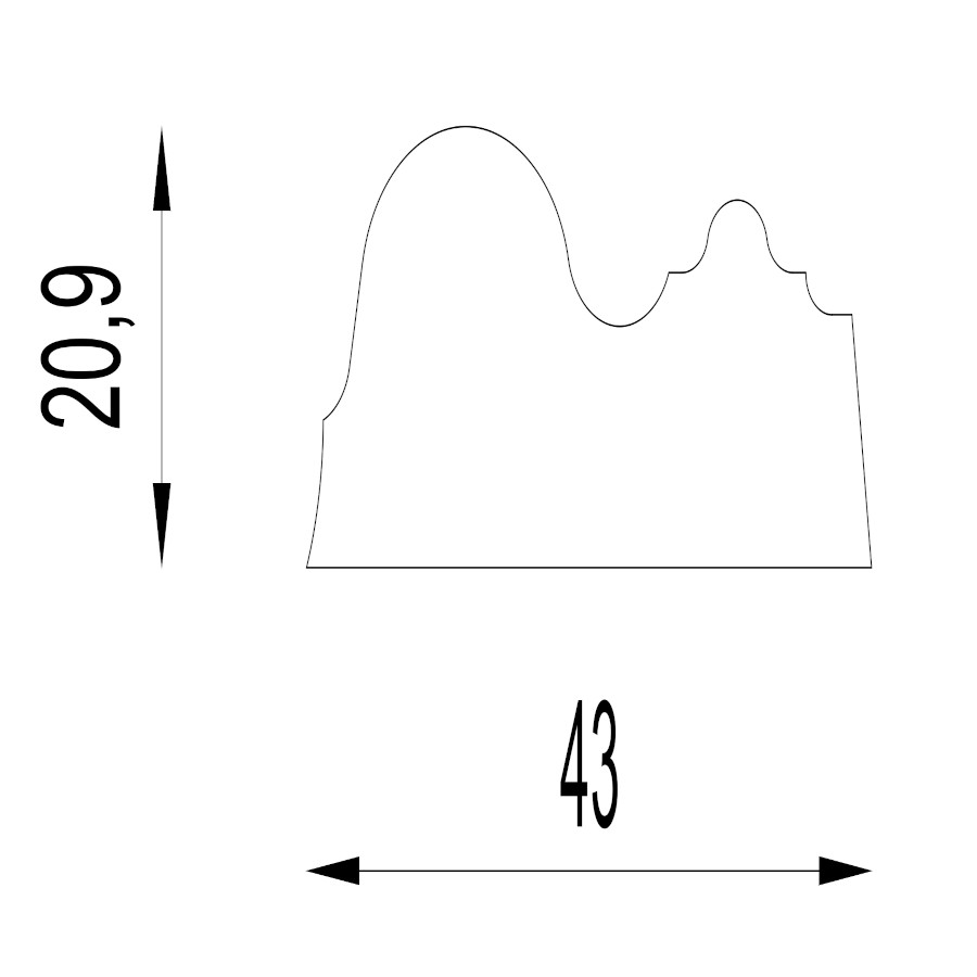 Wymiary: grubość 21mm x wysokość 43mm x długość 2000mm